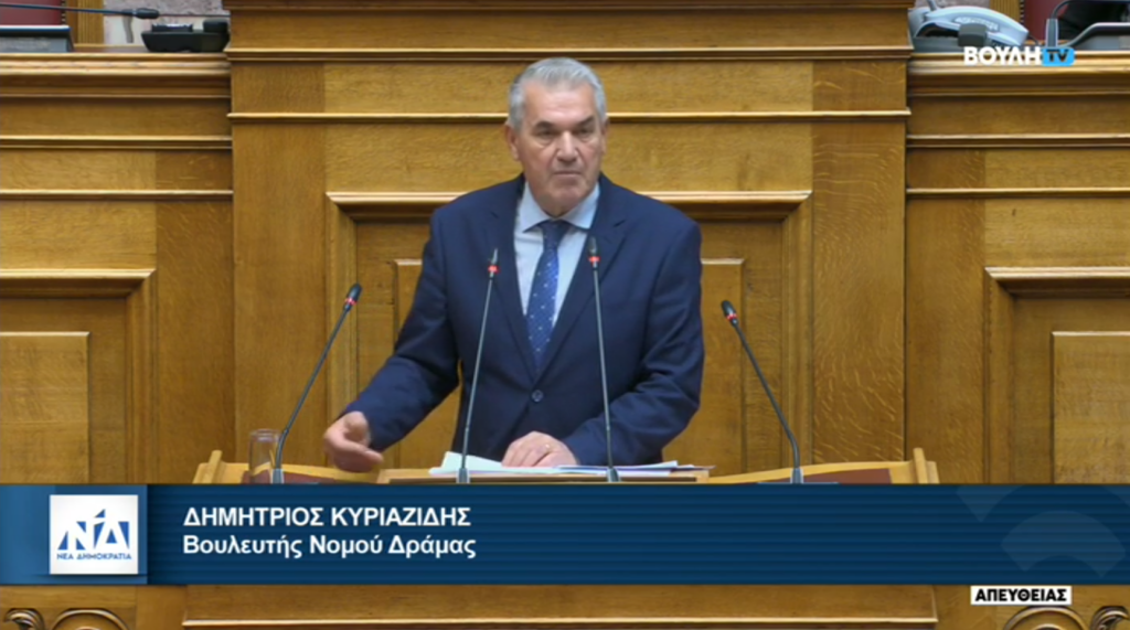 Ο Βουλευτής Δράμας της Νέας Δημοκρατίας κ. Δημήτρης Κυριαζίδης, παρενέβη στη Βουλή κατά τη συζήτηση του Νομοσχεδίου του Υπουργείου Οικονομικών, το οποίο αφορά στη μείωση των φορολογικών συντελεστών και στην ενίσχυση του εισοδήματος των πολιτών.